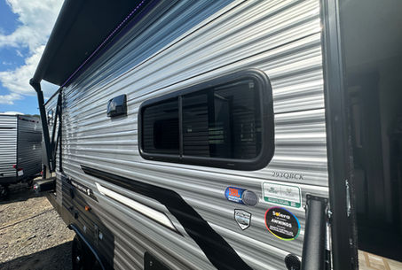 At Camp Oaks RV, we always list our out-the-door price!! There are no hidden or additional fees. There are NO doc fees, prep fees, title fees, etc... The ONLY addition is sales tax, which is by your location (not ours). Just because there are no fees, doesn't mean we don't do it! You still get a full prep, demo and we will handle the title work if you have a loan. Every new camper comes with a battery and box, full propane tank, a full demonstration on how to use the camper and a starter kit. The starter kit includes, well, everything you need to get started! We include a water hose, sewer hose, water pressure regulator, adapter, toilet paper, chemical and a hitch pin. And if the manufacturer does not include a spare tire, we will give you that too, because safety is our top priority!
